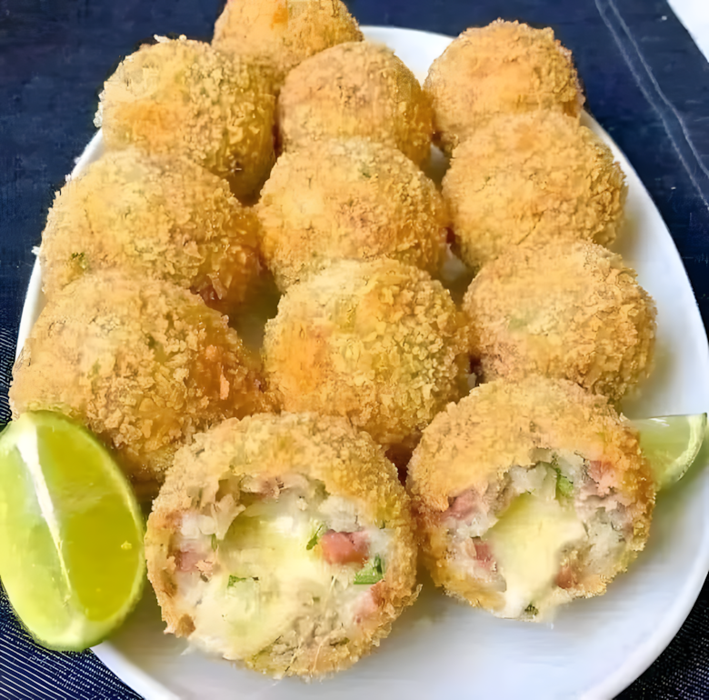 Scoop about 2 tablespoons of the mixture and shape it into a ball. (Tip: You can insert a small cube of cheese inside for an extra gooey center 🧀).