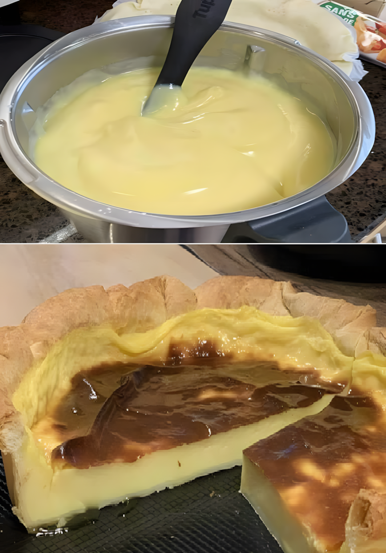 Bekleed de eerder ingevette en met bloem bestoven vorm met het deeg en prik gaatjes in de bodem en de zijkanten met de tanden van een vork. Zet de vorm in de koelkast terwijl u de vulling bereidt. Verwarm de oven voor op 180 °C. Klop