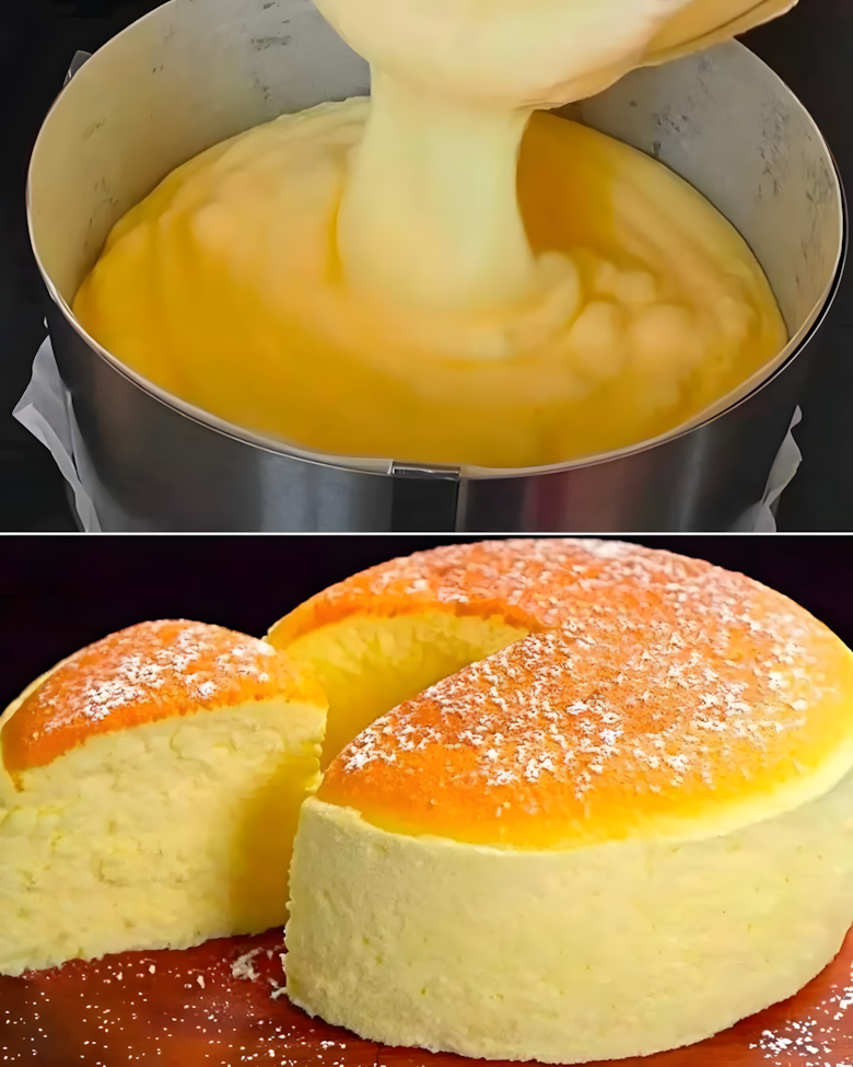 Deze zachte, goudgele cake heeft een luchtige, bijna souffléachtige textuur.