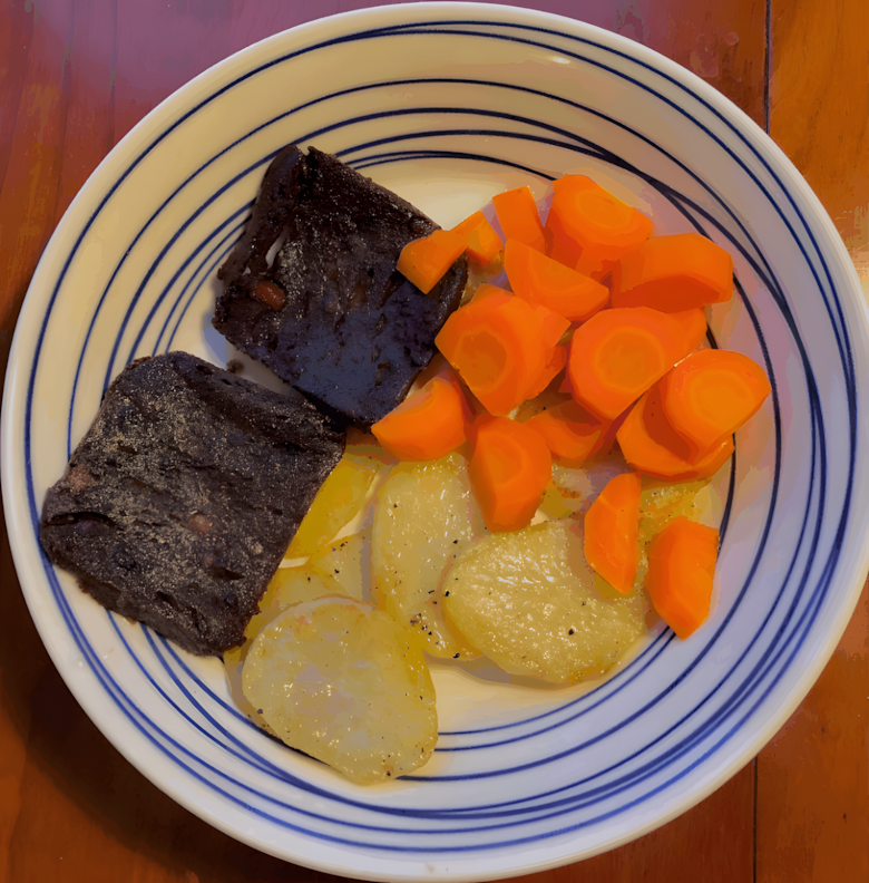 Op dit bord ligt een portie van een gerecht dat de één warm van binnen maakt en de ander kippenvel bezorgt: balkenbrij. Een ouderwetse Hollandse klassieker, meestal met gebakken aardappels en wat groente erbij, zoals je hier ziet met worteltjes.
