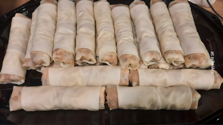 Laat de vulling volledig afkoelen voordat je de loempia’s rolt.