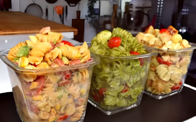 Recept 1: Romige pesto Ingrediënten: 500 g korte pasta (zoals fusilli) 50 g rauwe ongezouten pistachenoten 2 teentjes knoflook 50-60…