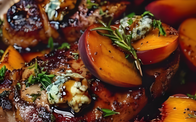Rundvleeskoteletten met perziken en balsamico blauwe kaas