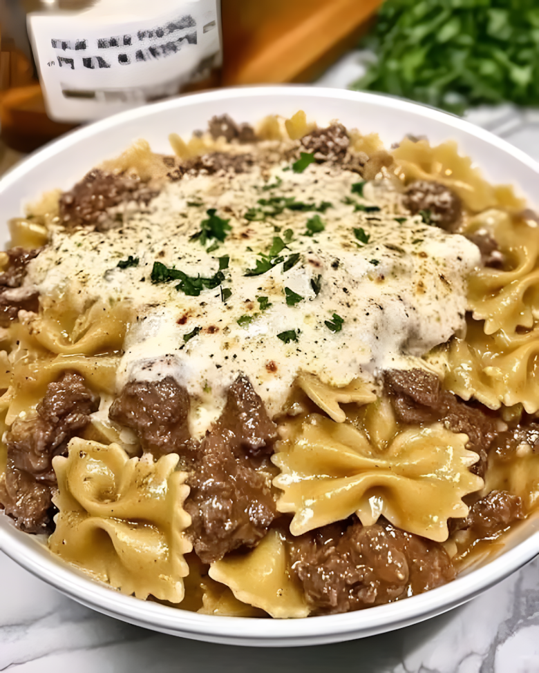 De combinatie van mals rundergehakt, romige slagroom en Parmezaanse kaas zorgt voor een fluweelzachte saus die elke hap omhult.