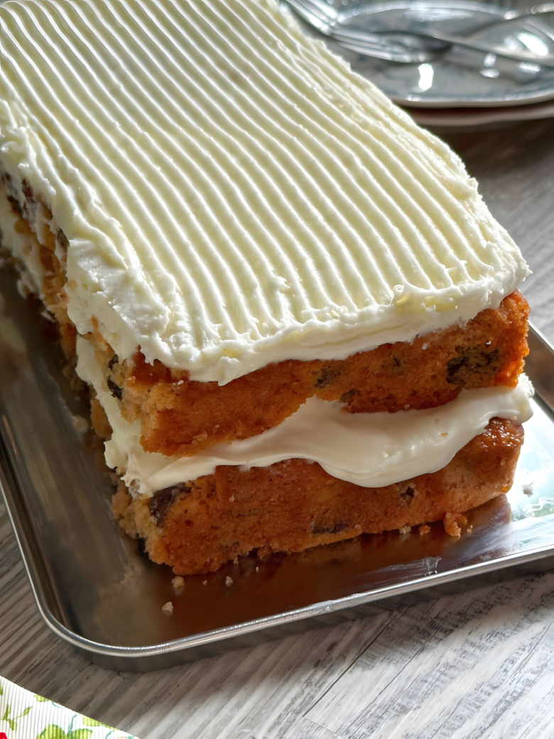 Deze versie, bedekt met een fluweelzachte roomkaasglazuur, tovert deze bescheiden lekkernij om tot een tijdloos dessert.