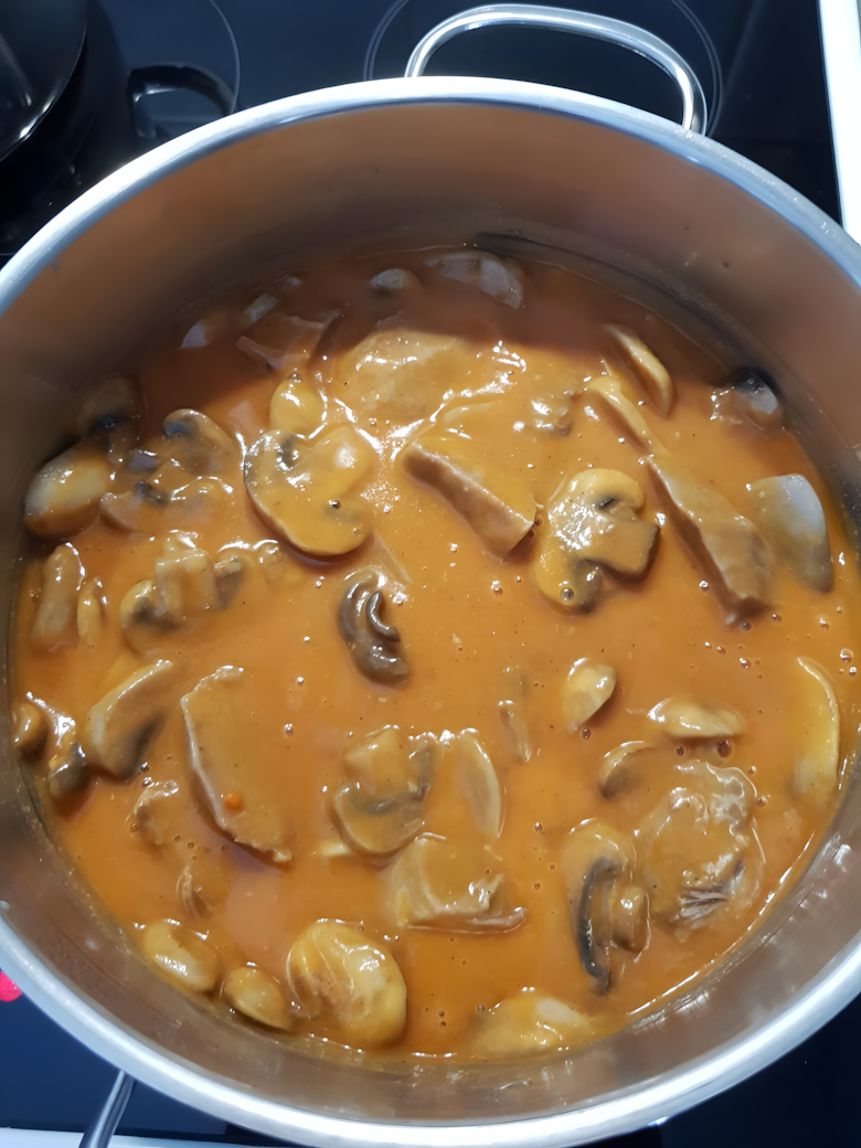 Verhit boter en olie in een grote pan. Bak het vlees op hoog vuur aan tot het mooi bruin is. Haal het vlees uit de pan en zet even opzij.